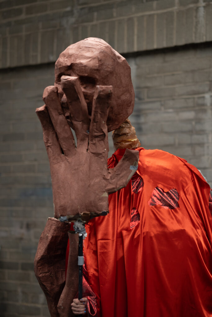 With the Father at the helm of this ritual, Dis-order tests the societal line between order and chaos with dark levity. Staged à la Judy Chicago’s The Dinner Party, the piece references Jewish symbolism, Greek tragedy, Pina Bausch’s Rite of Spring, and Jungian archetypes via large-scale puppetry by Freak Nature Puppets, an original script by writer Rebecca Schultz, and set design by artist Ari Salka — all set to live saxophone by Patrick Shiroishi.
