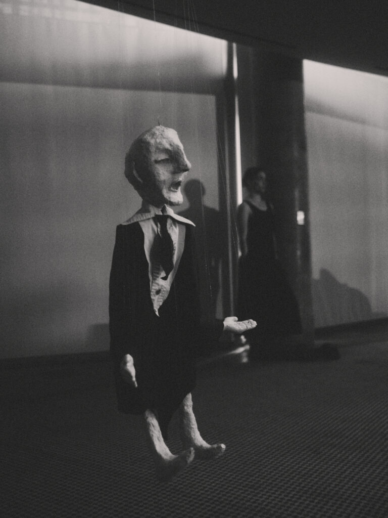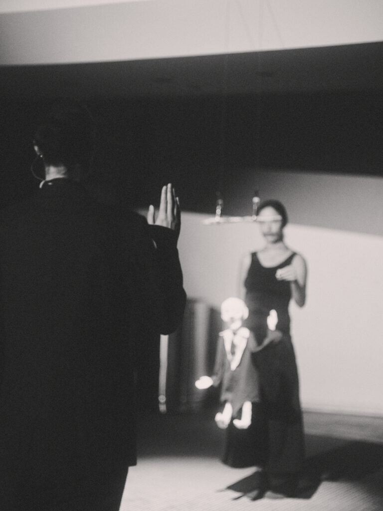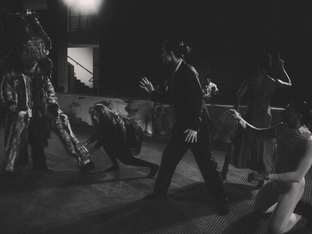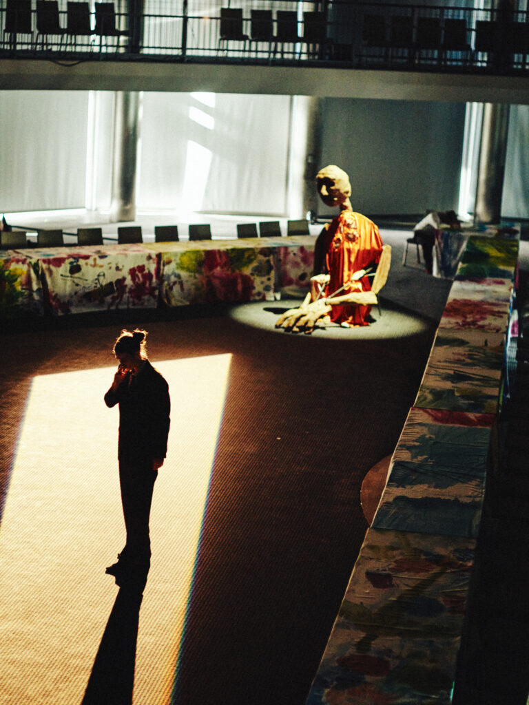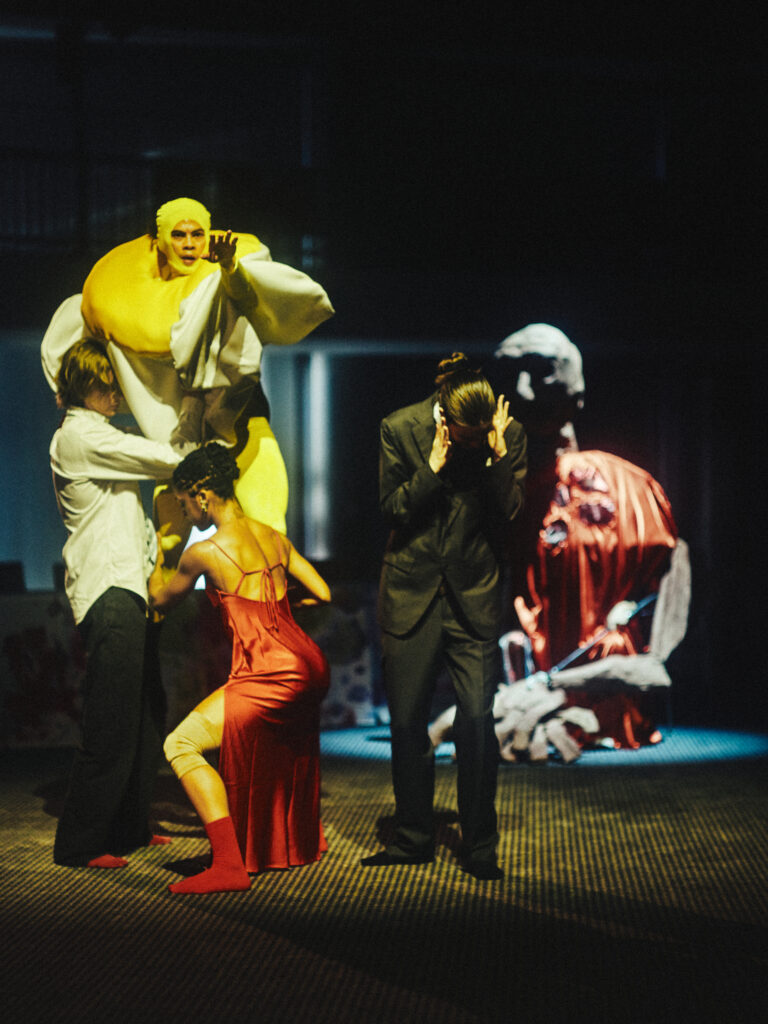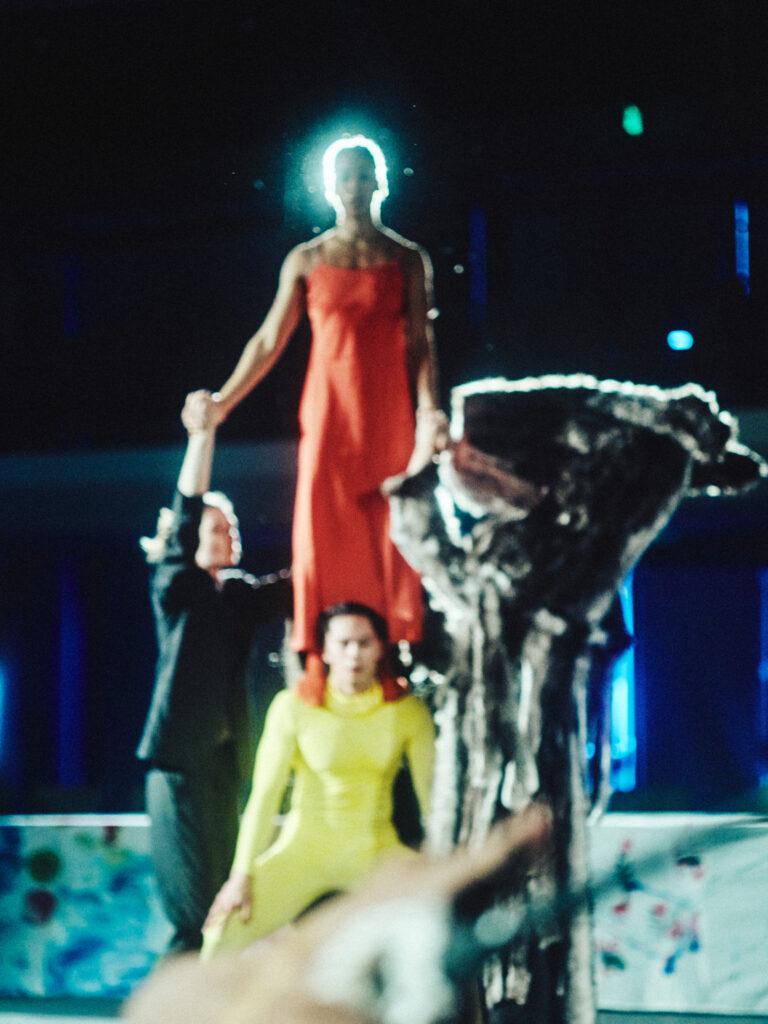 With the Father at the helm of this ritual, Dis-order tests the societal line between order and chaos with dark levity. Staged à la Judy Chicago’s The Dinner Party, the piece references Jewish symbolism, Greek tragedy, Pina Bausch’s Rite of Spring, and Jungian archetypes via large-scale puppetry by Freak Nature Puppets, an original script by writer Rebecca Schultz, and set design by artist Ari Salka — all set to live saxophone by Patrick Shiroishi and Dylan Fujioka.